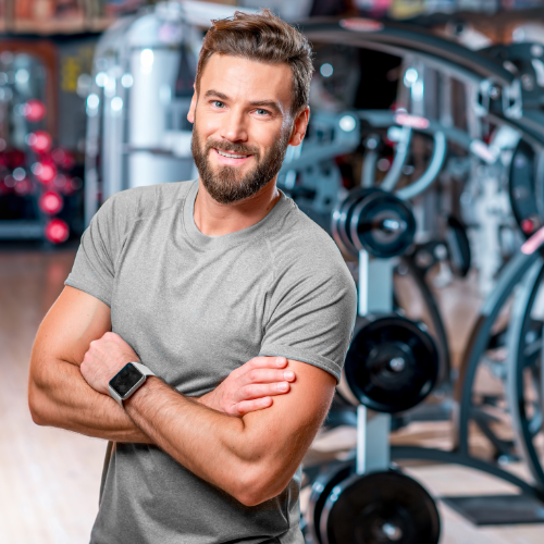 - als Fitnesstrainer in einem Studio arbeitest