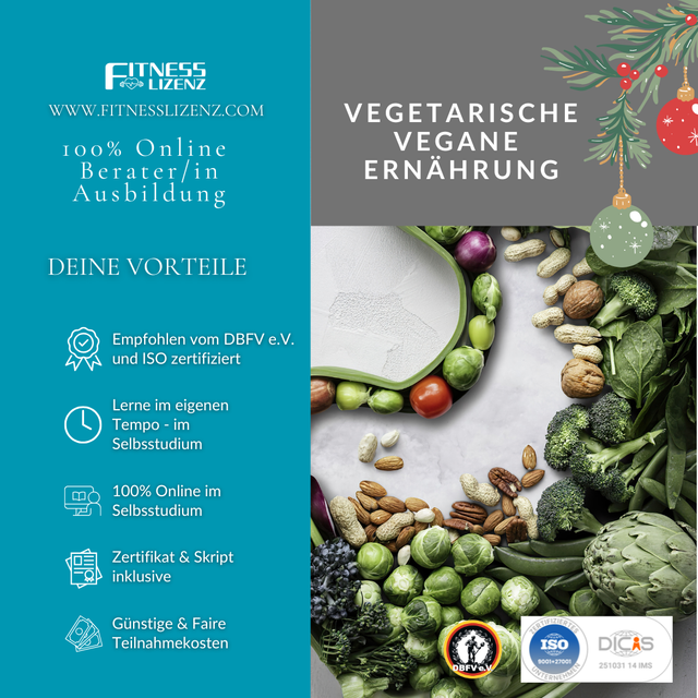 🎓 Nach erfolgreichem Abschluss erhältst Du ein anerkanntes Zertifikat , das Dich als Berater/in für vegetarische und vegane Ernährung ausweist. Damit kannst Du in eigener Praxis, im Studio, in Gesundheitseinrichtungen oder beratend in der Lebensmittelbranche tätig werden – oder Dein bestehendes Wissen als Ernährungsberater*in vertiefen.